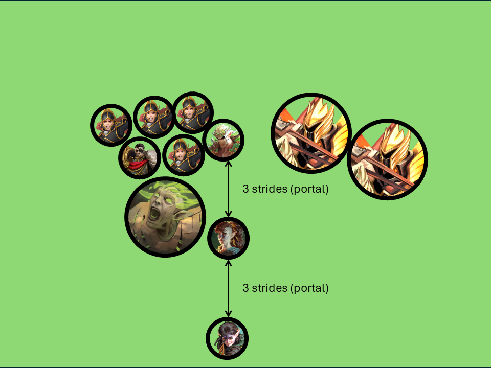 At the end of that turn, the Walker portals in 3 strides from Aileen and drops off Hawthorn within 3 strides of her, engaged, and the Moss Hermit nearby.
