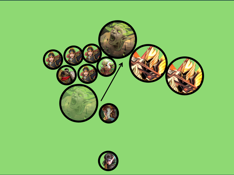 Then Mossy attacks and displaces the Angels into being engaged with the Hawthorn and herself.